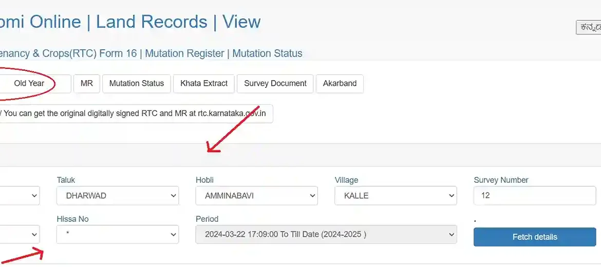 To view your Karnataka land record details, simply select whether you want information for the Current Year or the Previous Years.